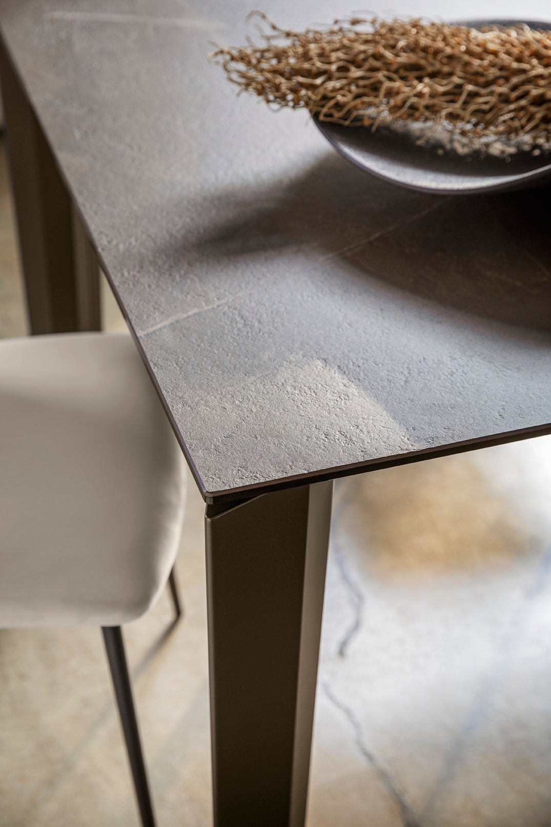 Hvis du vil ha en ekstremt holdbar overflate med fantastiske egenskaper, skal du velge keramiske bord fra våre italienske venner Calligaris & Connubia. Overflaten er så nær ripefri som en overflate kan være. Normal slitasje kan ikke skade overflaten, og selv under ekstreme forhold vil du bli overrasket over hvor fin overflaten holder seg. Det er også utrolig enkelt å rengjøre ettersom flekker lett kan tørkes av med en klut og vanlig vaskemiddel. Den har også høy motstand mot varme, noe som betyr at du enkelt kan plassere en varm stekepanne eller kasserolle direkte på bordet. Egenskapene til den keramiske overflaten er revolusjonerende i møbelindustrien, da den tilbyr en stilig og eksklusiv finish som holder som ingenting annet. Perfekt for familier med barn som ønsker et designet og attraktivt bord som tåler ekstrem slitasje.