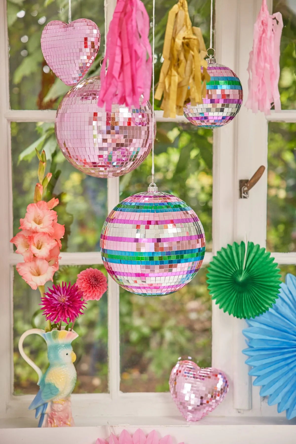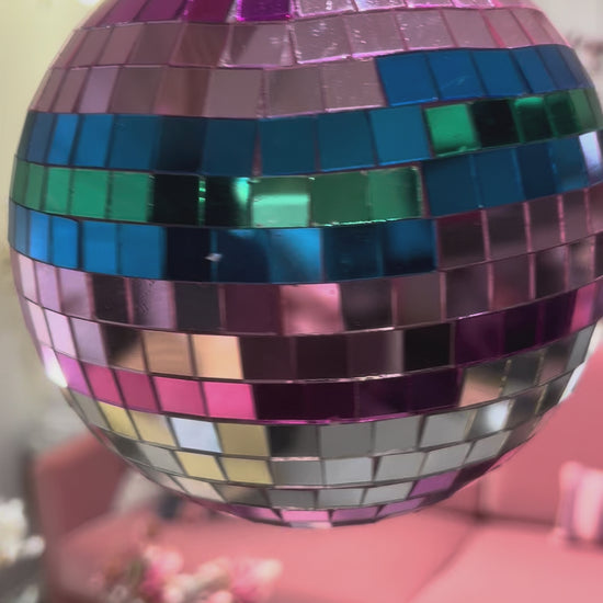 Med denne vakre 3-fargede discokulen kan du krydre enhver fest og legge til ekstra glam. Skap en atmosfære som tilbyr morsomme øyeblikk, sang, dans og minneverdige øyeblikk. Alt blir automatisk mye mer festlig med disse glitrende kulene hengende over hodet ditt.