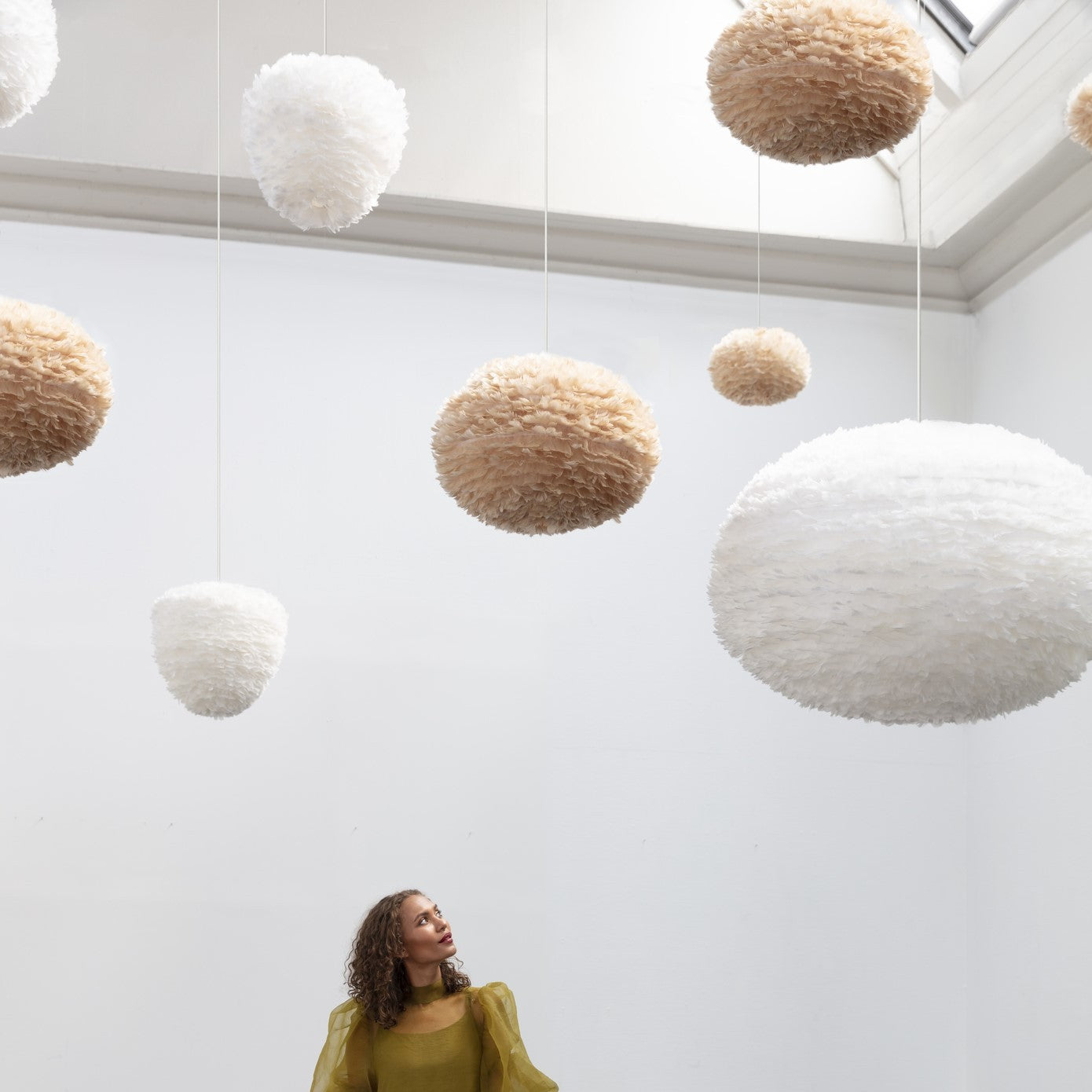 Eos-lampeskjermen henter sin styrke og fortryllende skjønnhet fra de myke fjærene som omslutter rommet i en varm og innbydende atmosfære. Håndlaget av 100 % naturlige gåsefjær, gir denne unike lampeskjermen et mykt, behagelig lys og tilfører ethvert interiør et sofistikert og elegant preg.