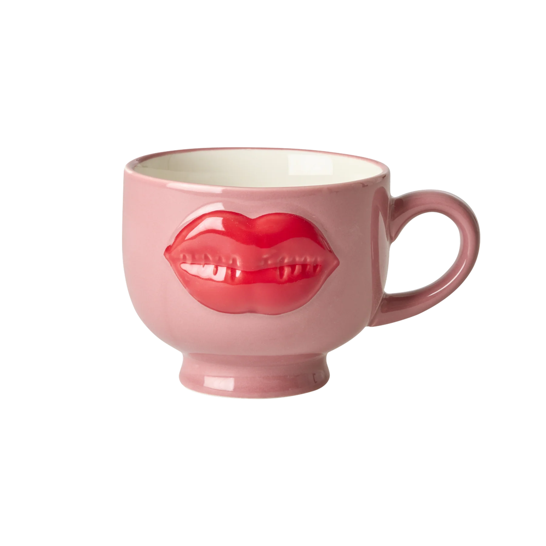 Denne nydelige rosa keramikkoppen med store røde lepper støpt inn i designet sprer glede og farge i hverdagen. Perfekt for deg som elsker lekent design og unike produkter som skiller seg ut.