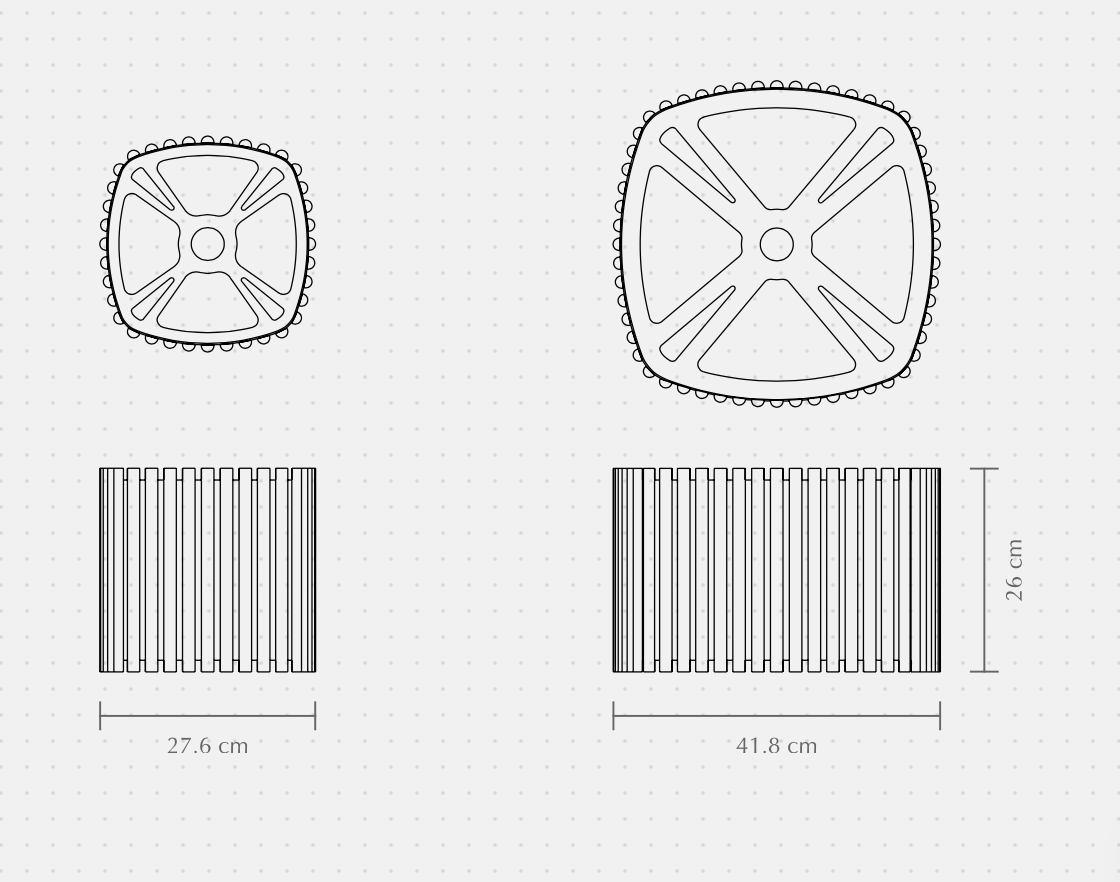 Large: H: 26 cm W: 40.9 cm D: 40.9 cm