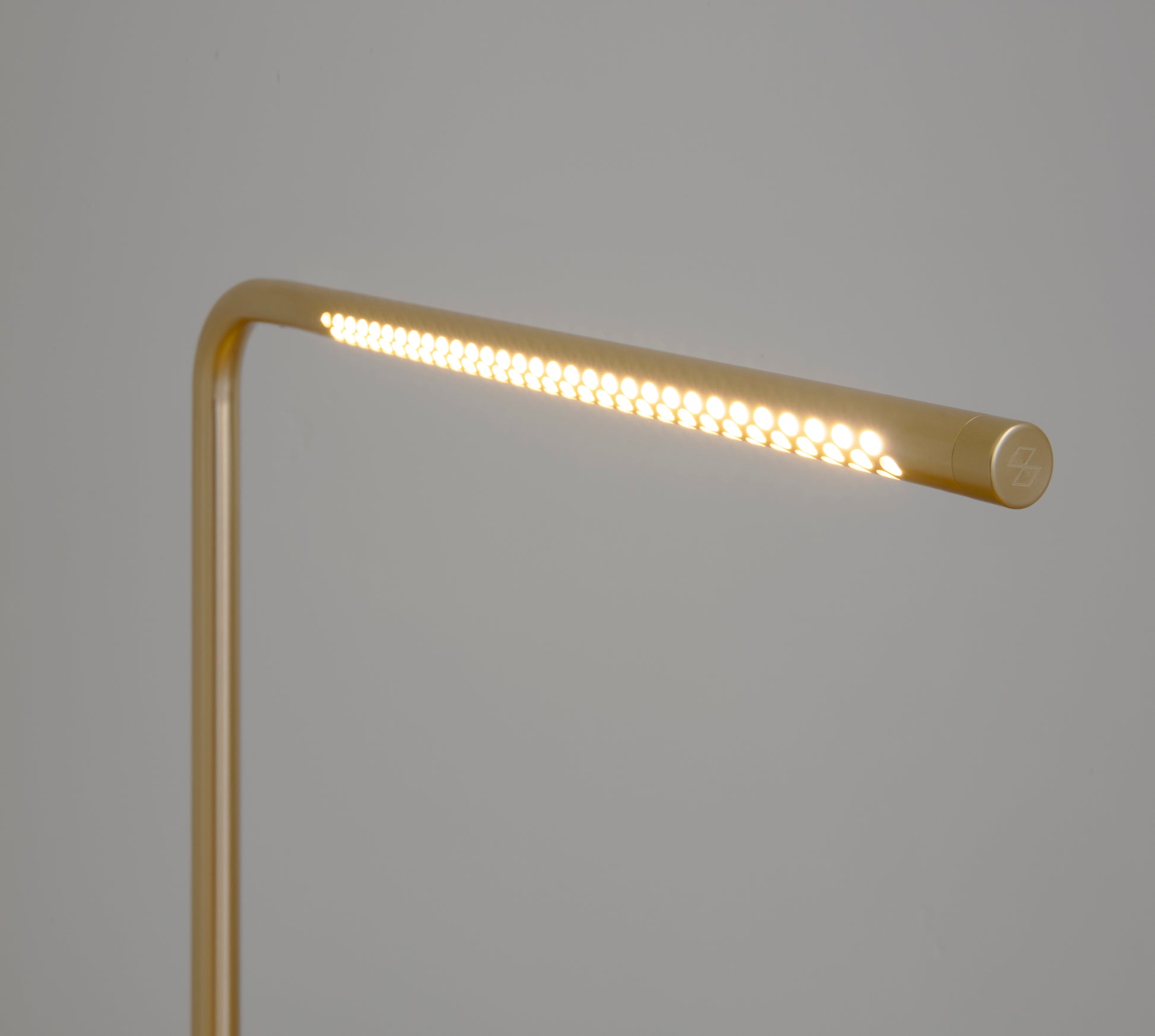 Omni Gulvlampe med et design hvor form møter funksjon på en elegant måte. Lampen er laget av aluminium og kan roteres 360 grader, noe som gir en praktisk og stilren belysningsløsning både til lesekroken, ved sofaen, skrivebordet og nattbordet.