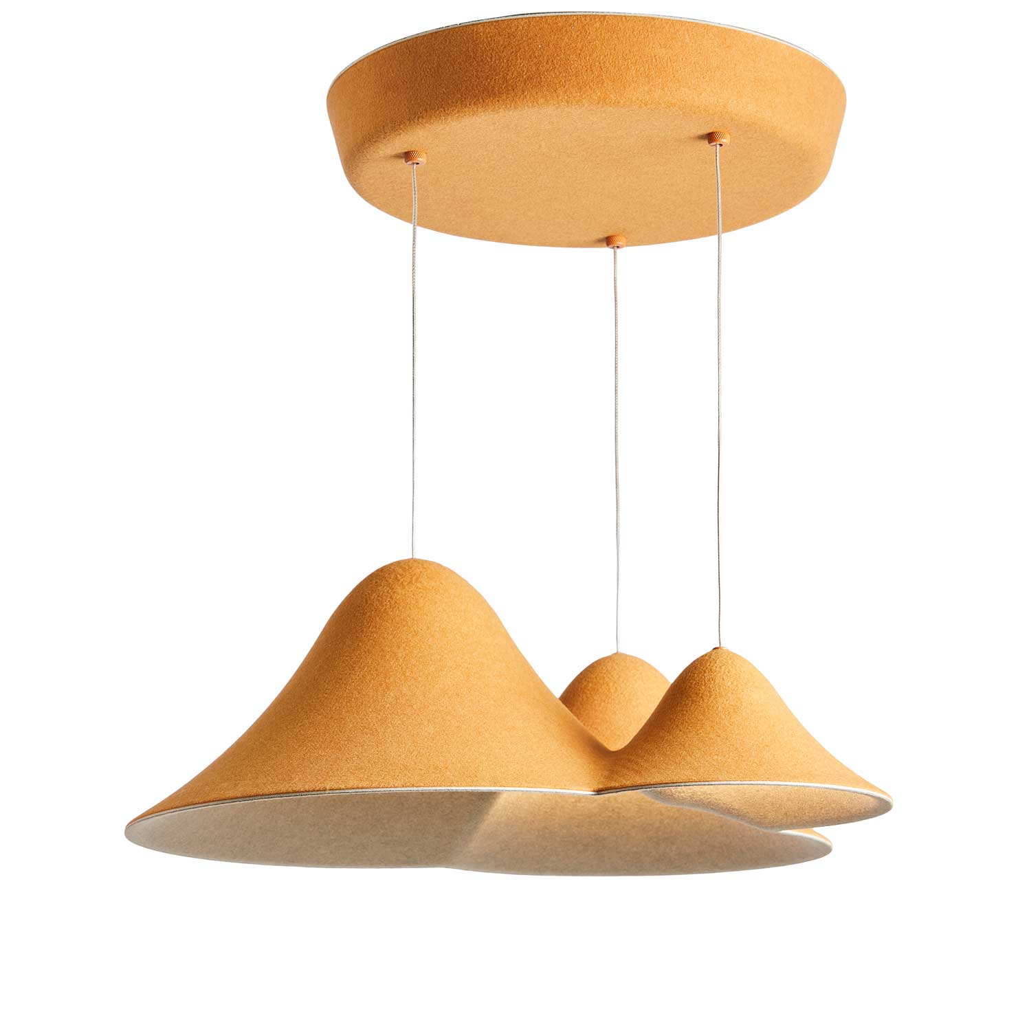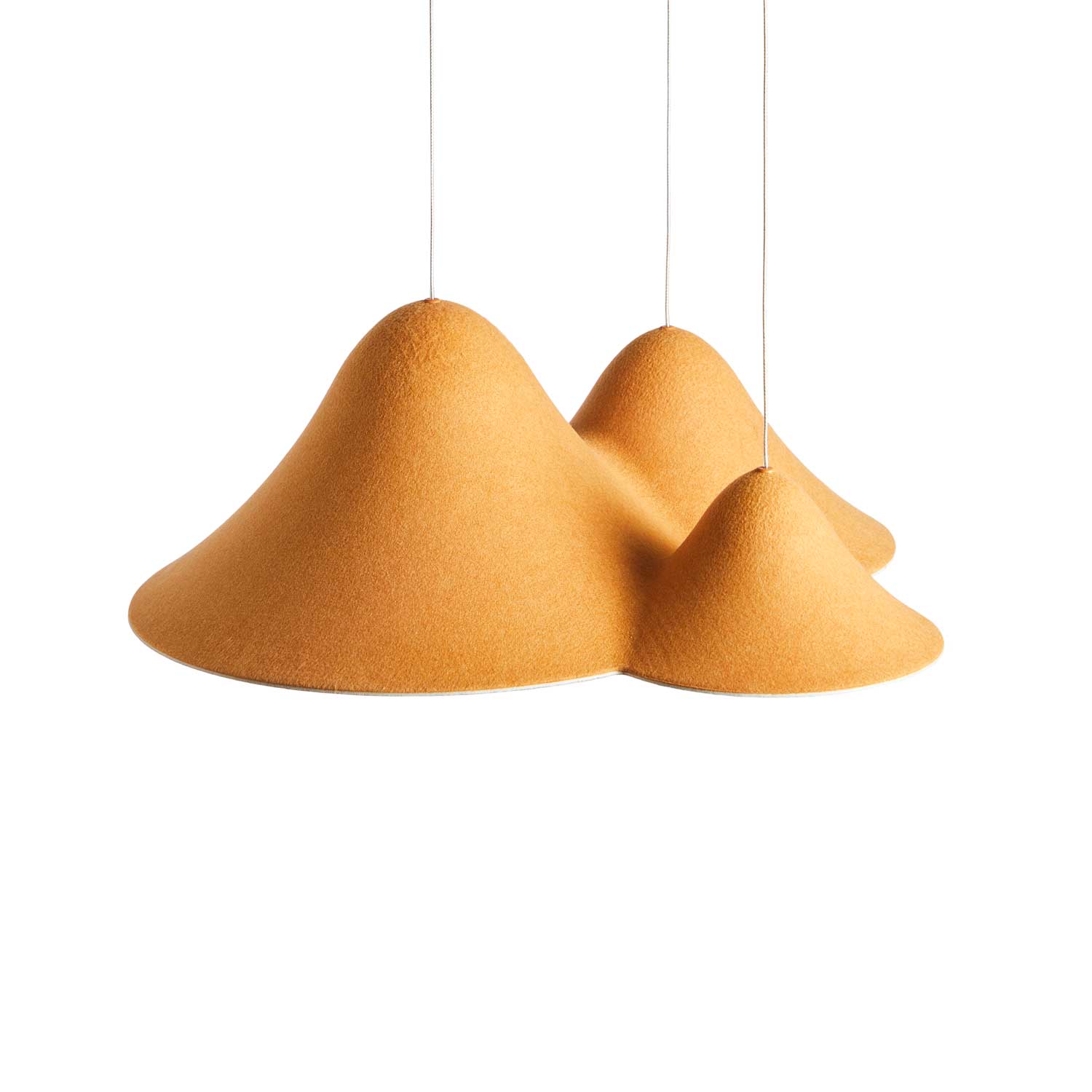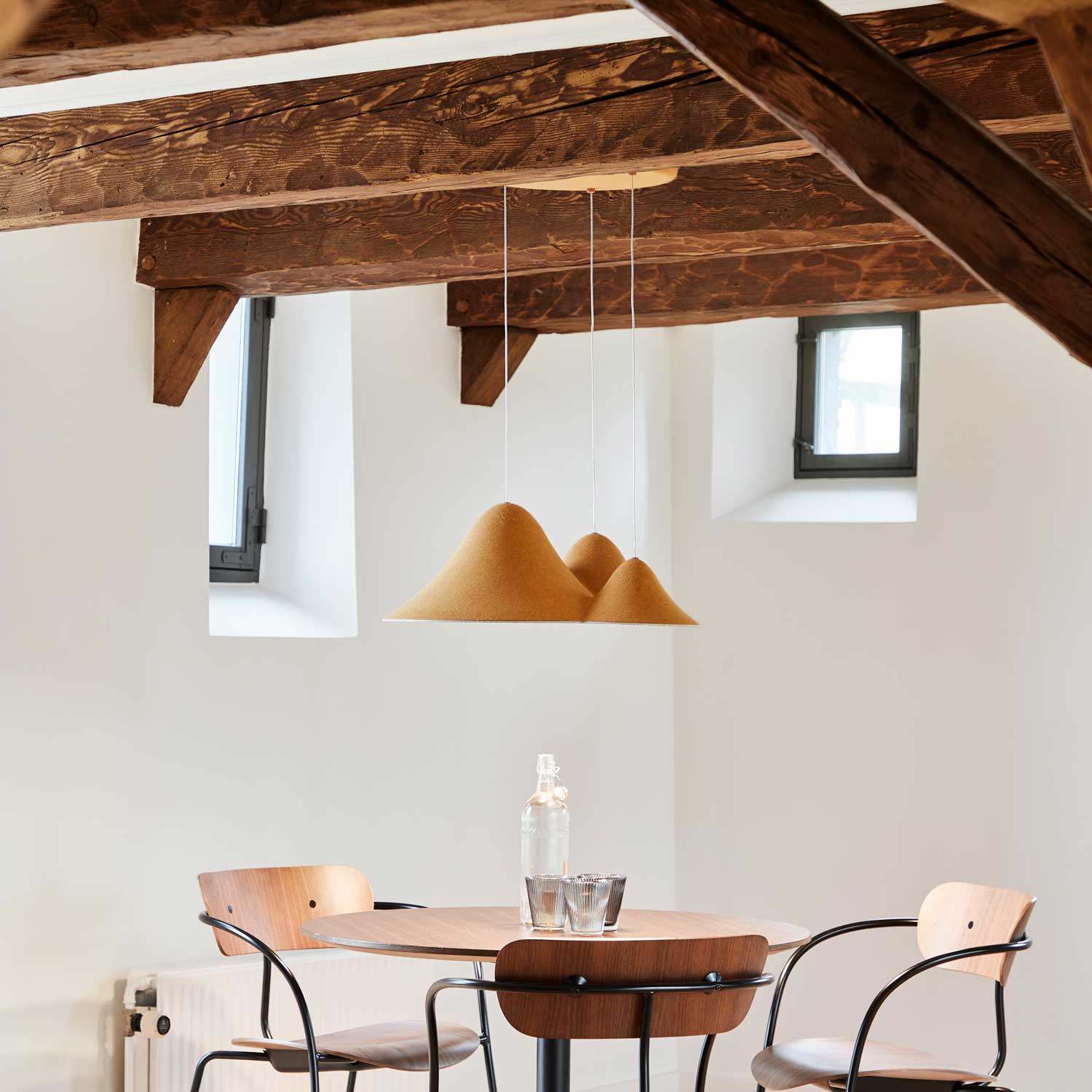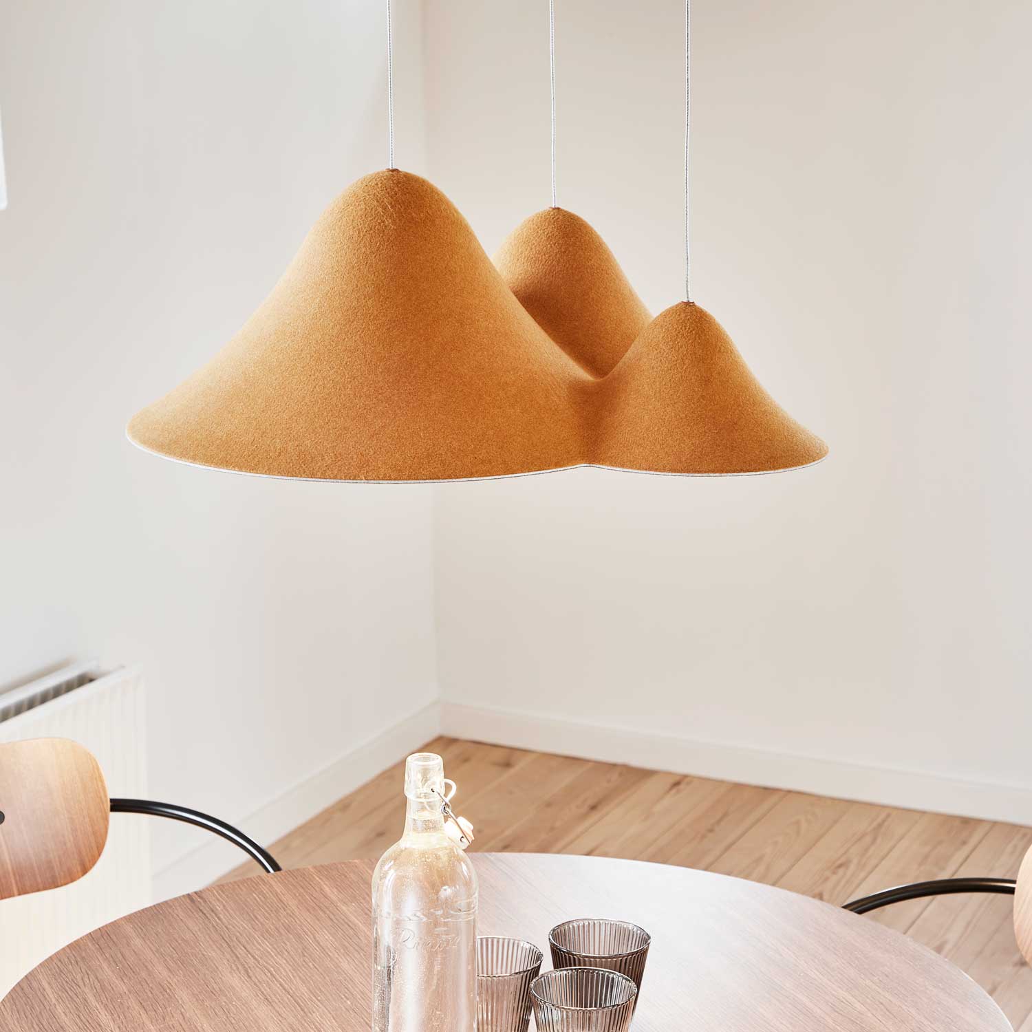 Panorama S pendellampen er inspirert av de myke formene og fargene fra naturens bakkelandskap. Dens jordgule eksteriør kombinert med den grå innvendige finishen minner om skumringens myke lys over bakker, som bringer en følelse av natur og harmoni inn i hjemmet ditt. Det unike designet, som elegant kombinerer tre buede former, skaper et visuelt uttrykk som er både beroligende og fengslende. Utstyrt med LED-teknologi og laget av aluminium, akryl og filt, står Panorama S som et symbol på kvalitet, lys og en varm atmosfære.