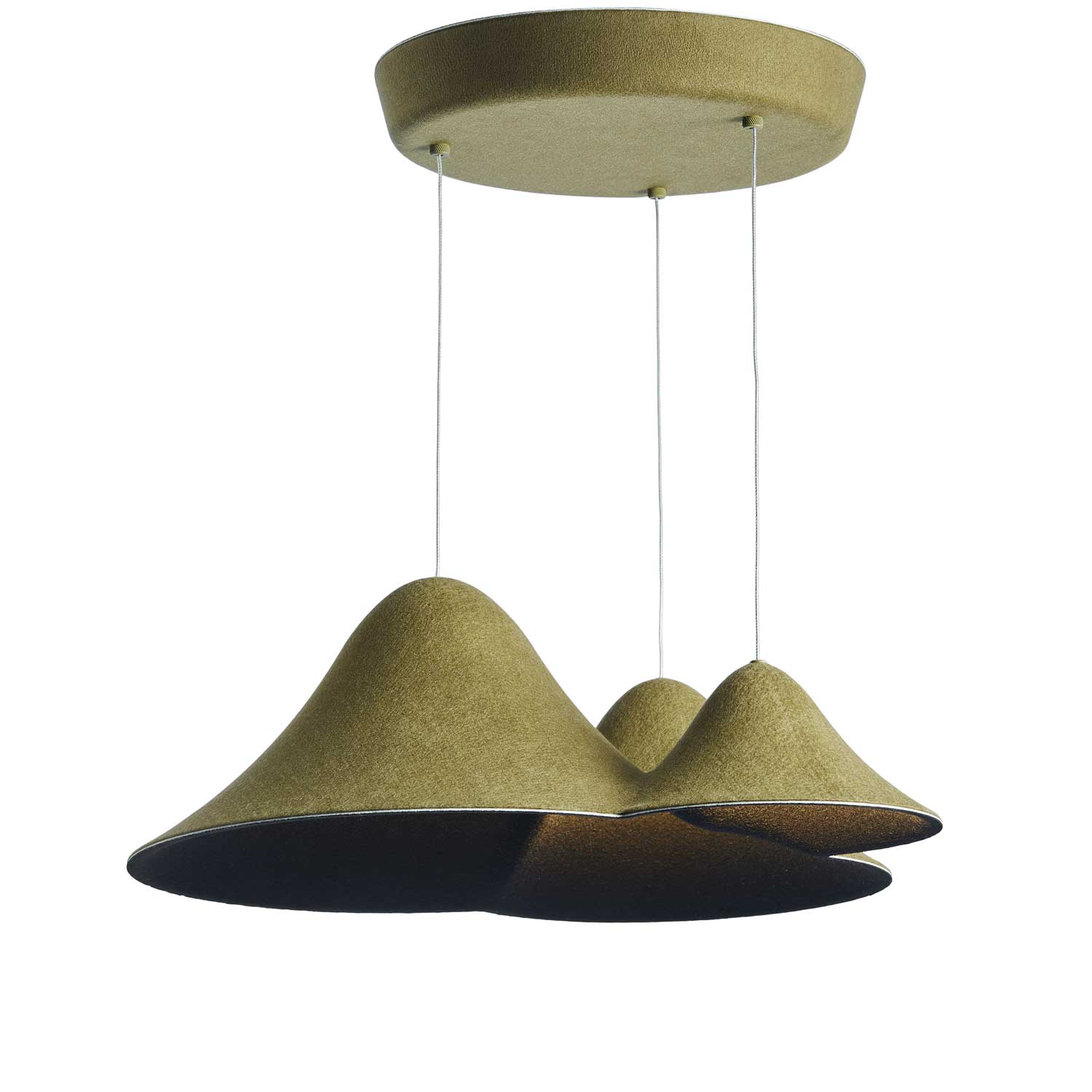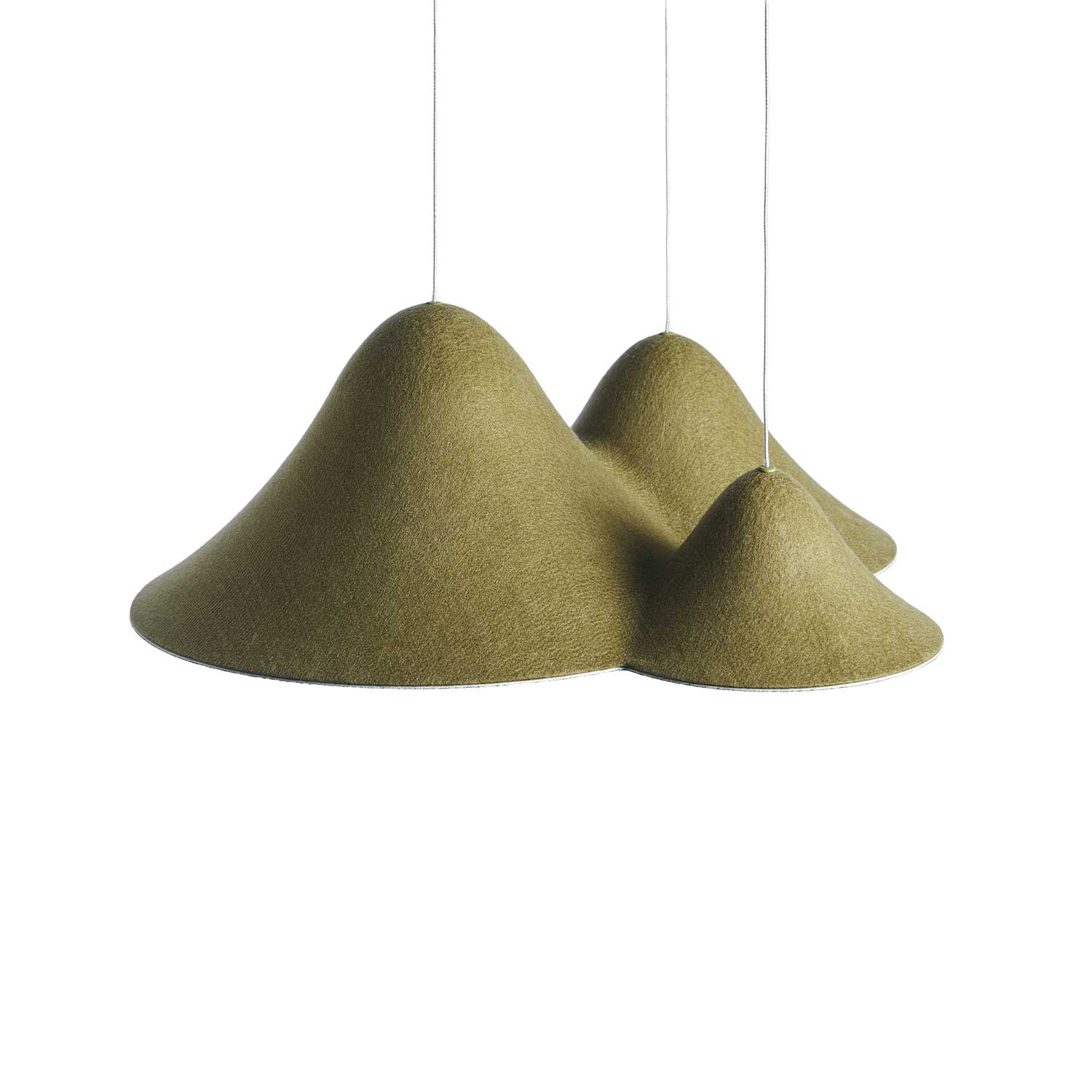 Designet inkluderer tre elegant hevede åser som etterligner et naturlandskap, og skaper en unik visuell og atmosfærisk opplevelse. Hver lampe er laget av høykvalitets materialer som filt, akryl og aluminium, og med sin innebygde LED-teknologi gir den et varmt lys på 2700 Kelvin og 1323 lumen. Dette sikrer en koselig atmosfære som er perfekt for daglig bruk og spesielle øyeblikk.