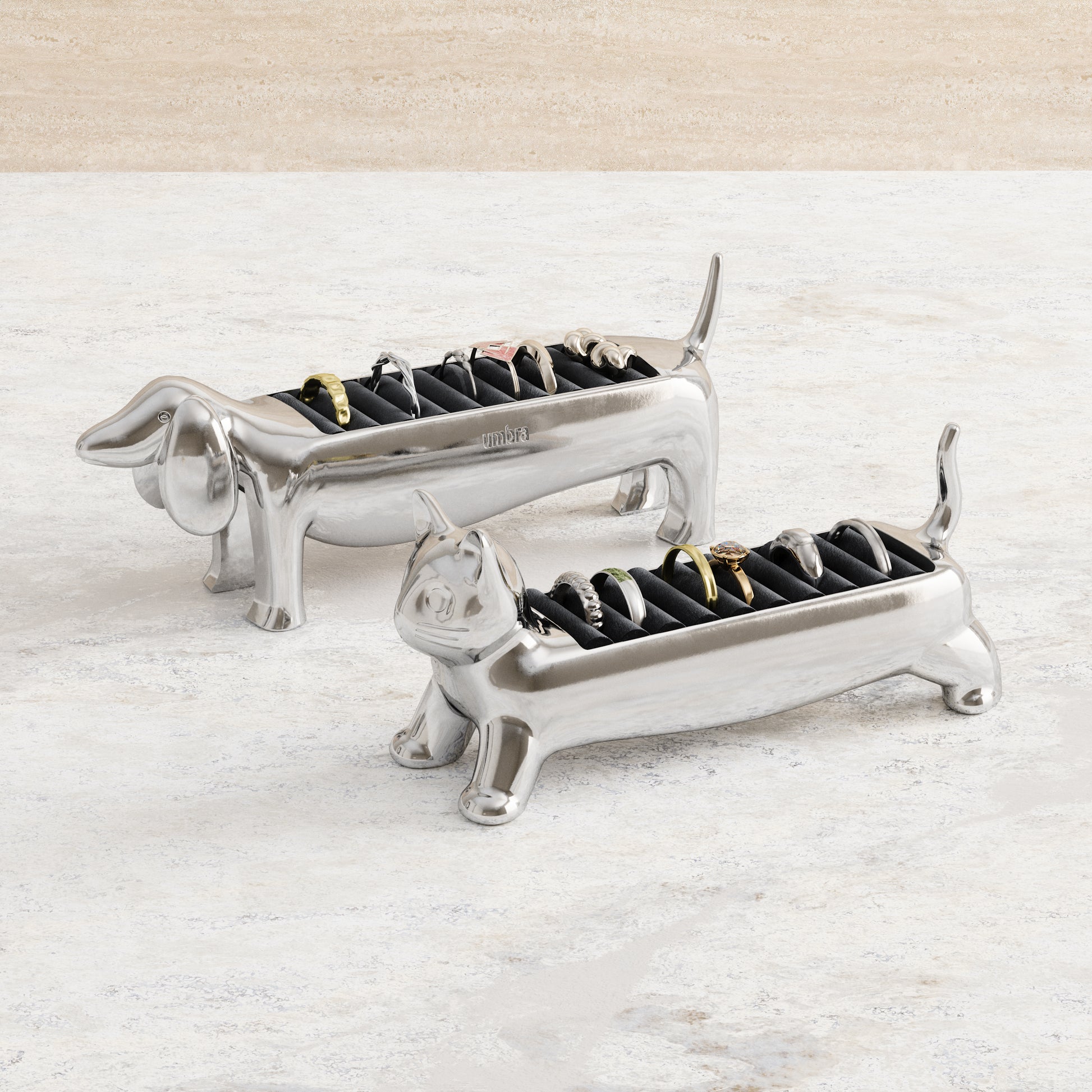 Møt Ali Cat, en ringholder inspirert av den lekne sjarmen til munchkin-katten. Med myke, velour-polstrede puter holder Ali Cat ringene dine trygt og ripefritt – med plass til opptil 9 ringer. Like praktisk som den er sjarmerende.