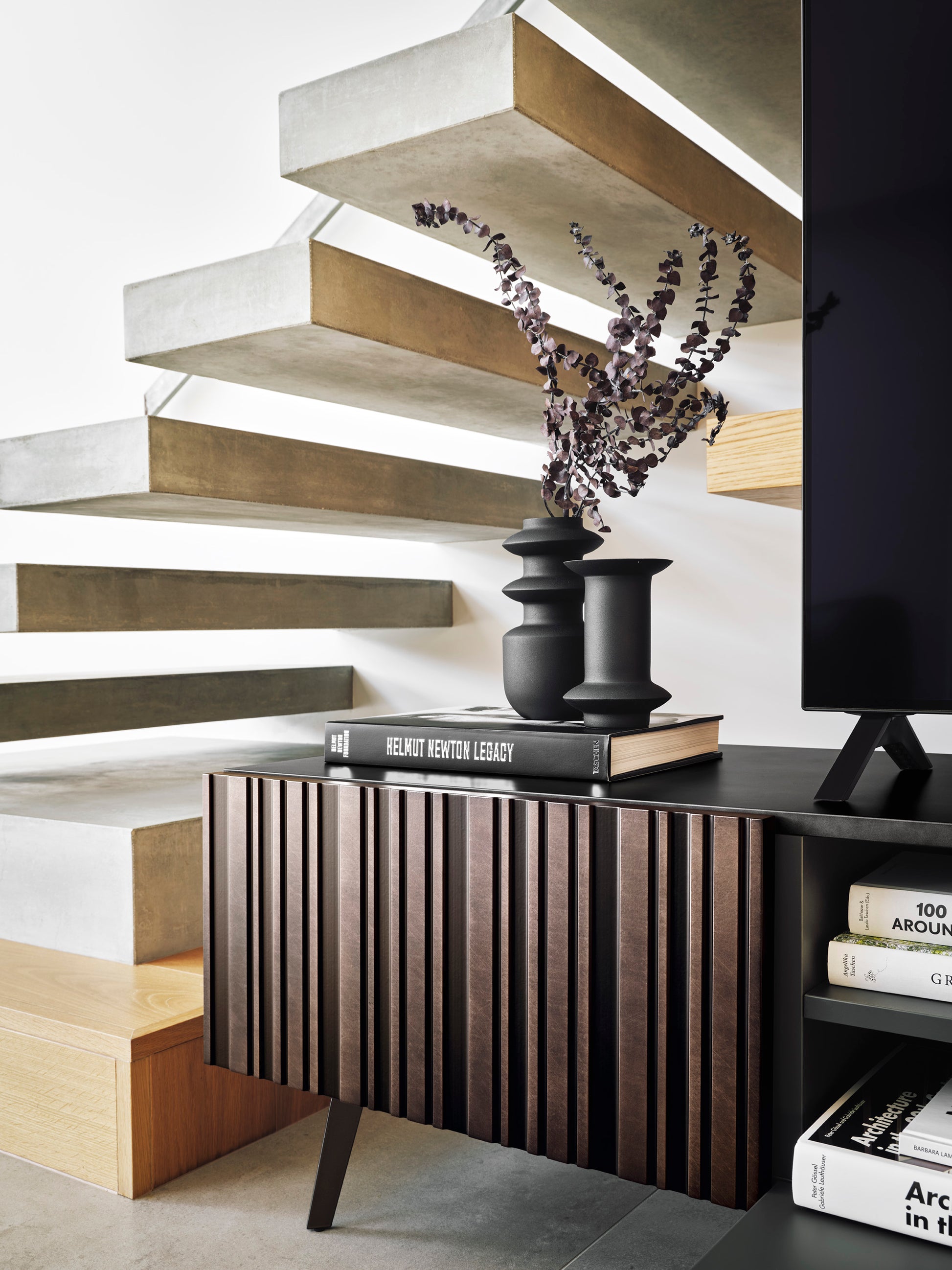 Calligaris har virkelig lekt seg med detaljer her. Dørene har et mønster av uregelmessige, vertikale striper som gir et levende spill av dybde og volum. Den børstede bronsefinishen fanger lyset på en helt unik måte – og gjør Stripe til et naturlig midtpunkt i stuen.