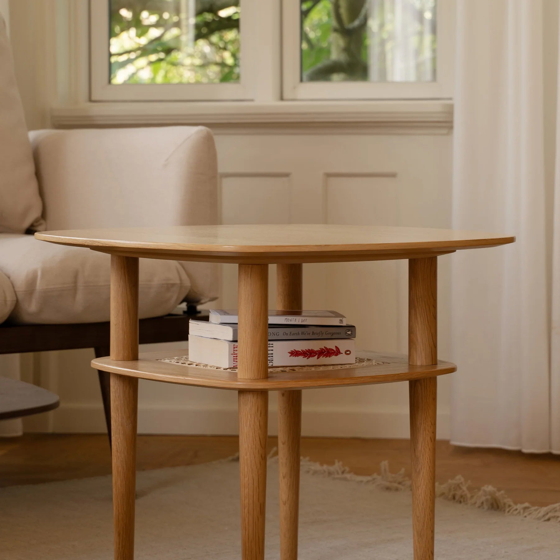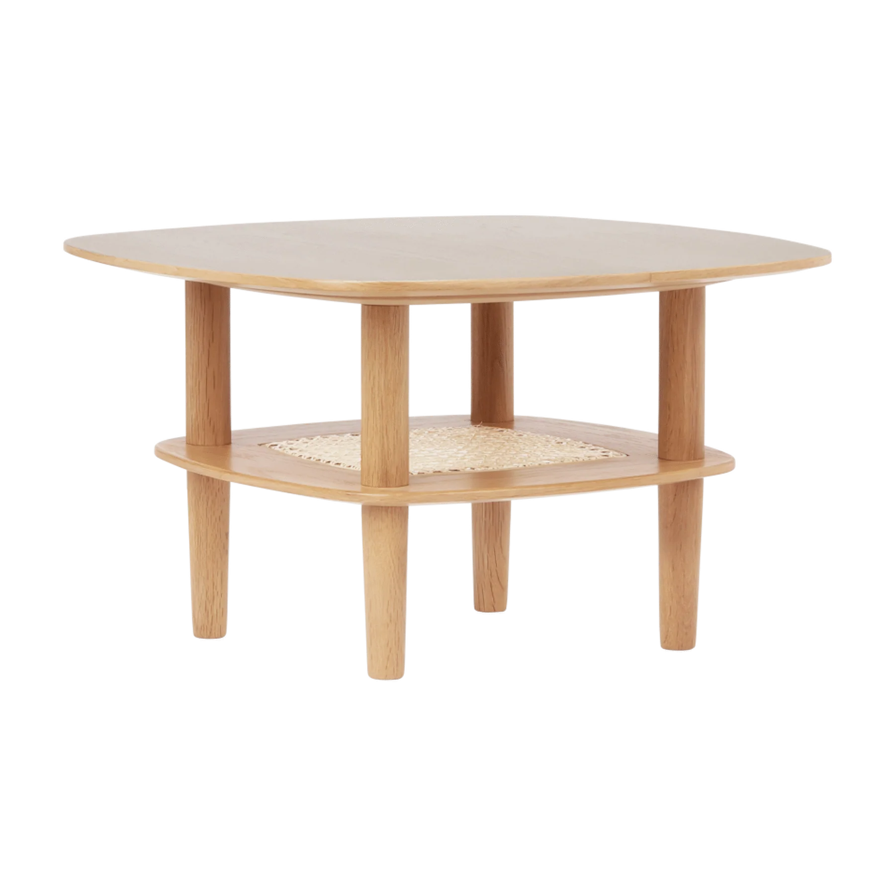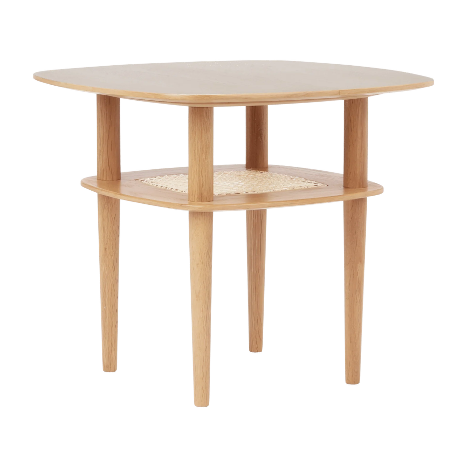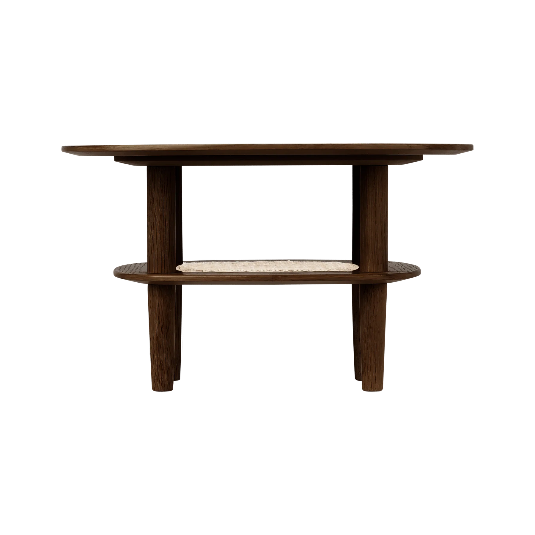 Together sofabord 60*60 cm er produsert i eik, med en hylle i rotting som gir et lett og luftig preg til designet. De avrundede hjørnene på bordet legger til et eksklusivitet uttrykk til designet. Bordets ben er trukket inn fra kanten av bordplaten - for sikkerheten til barn og tærne dine.